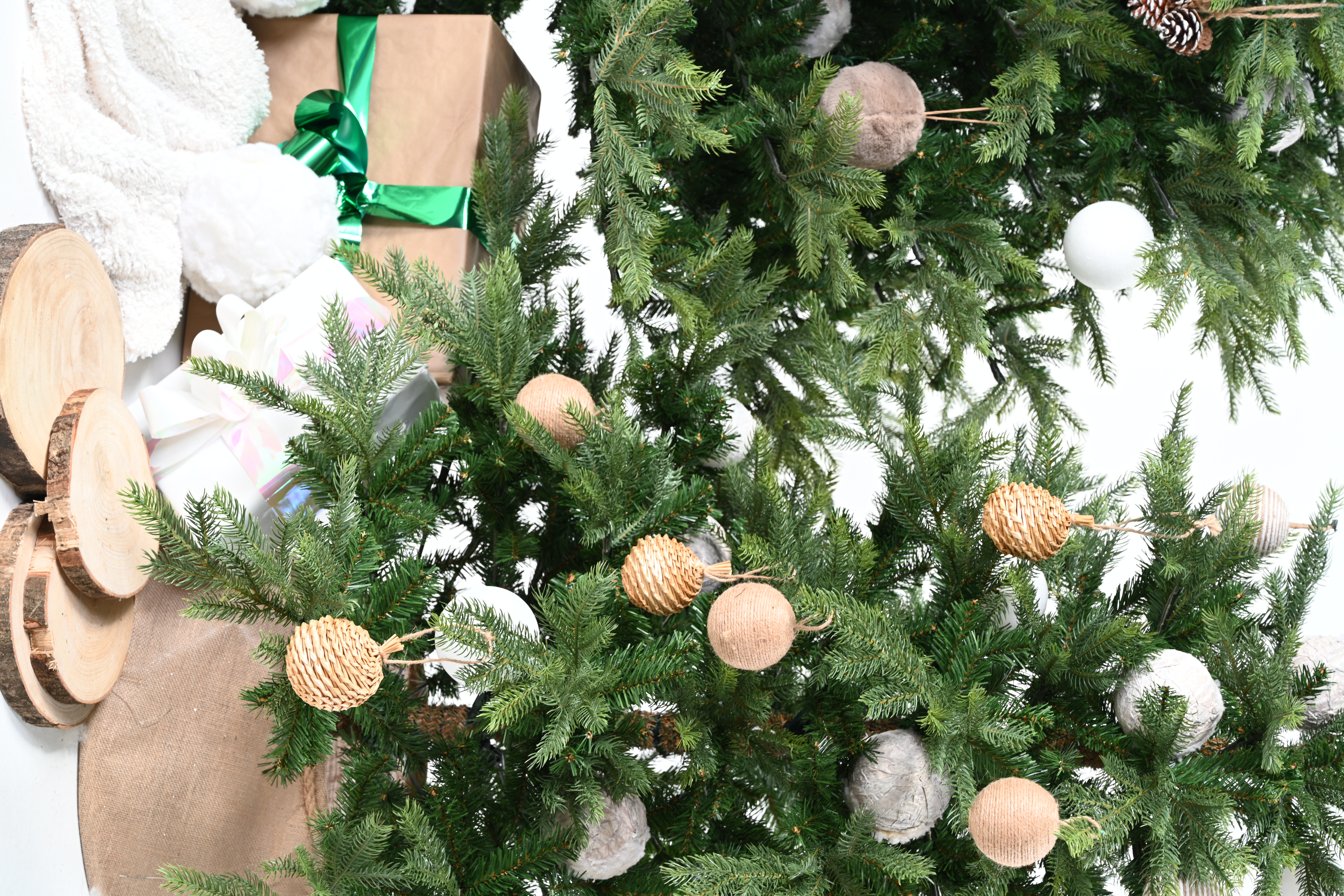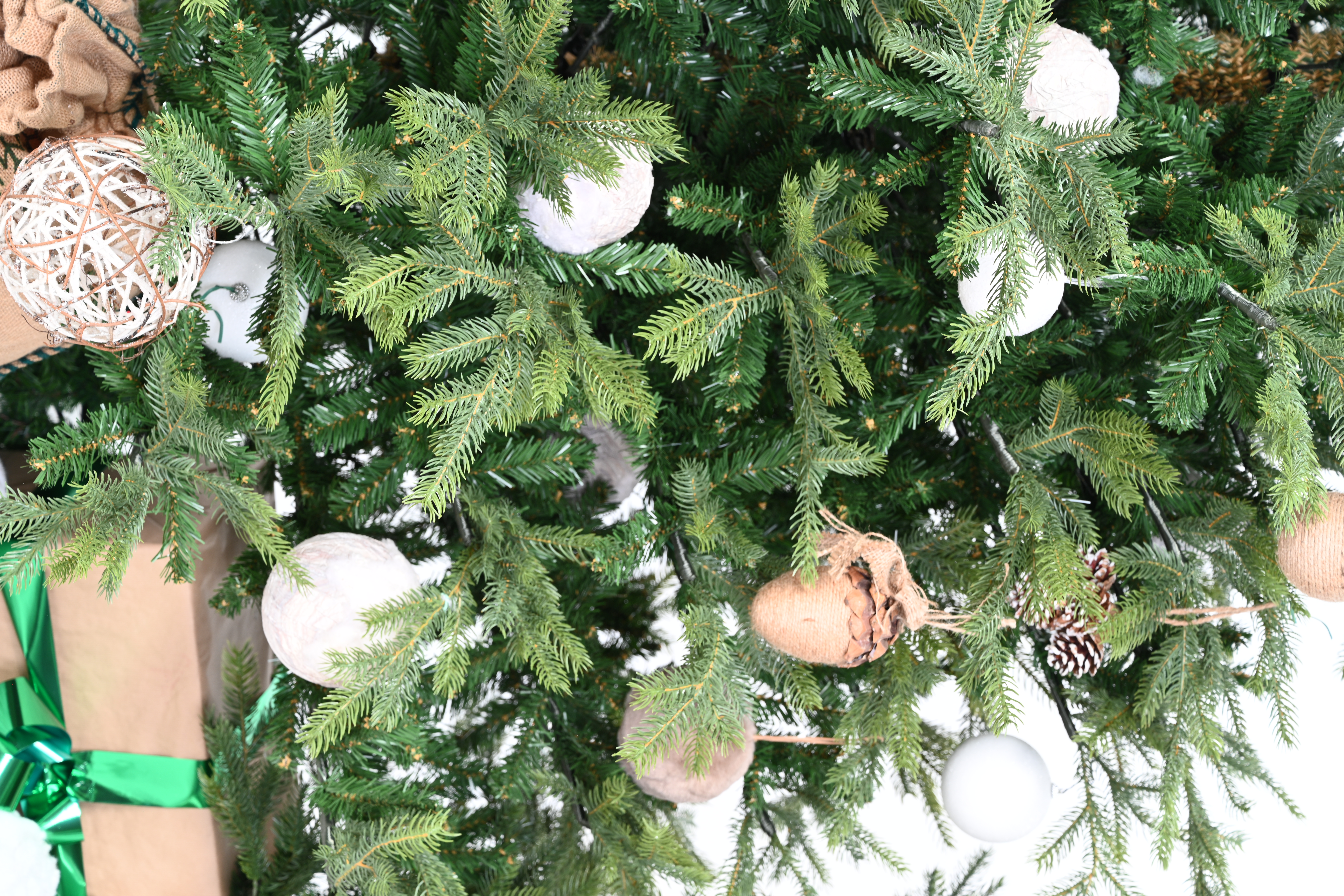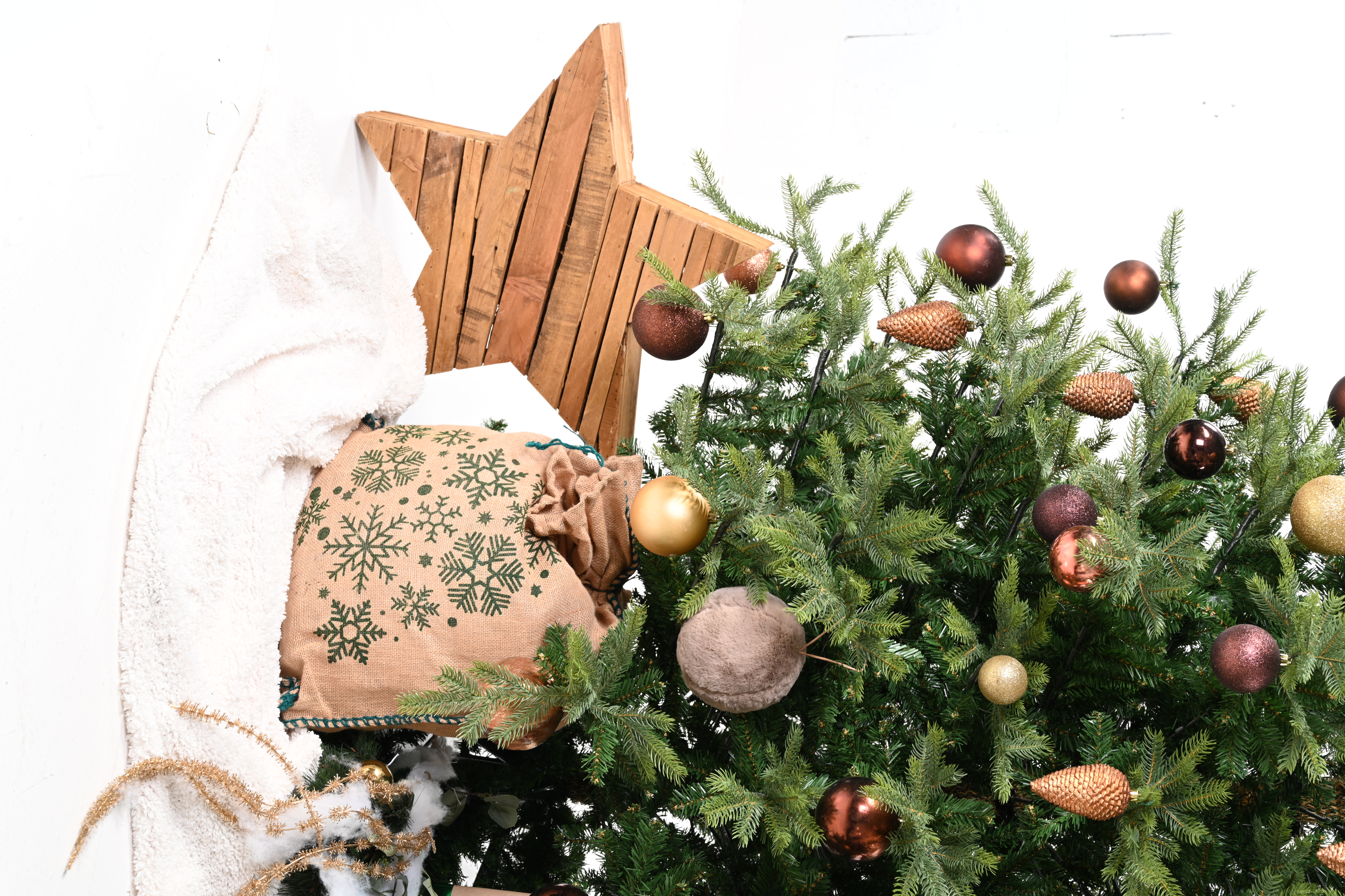 Sublimé par des éléments bruts à son pied (bois, pommes de pin, tons beiges et verts). Un retour à l’essentiel.