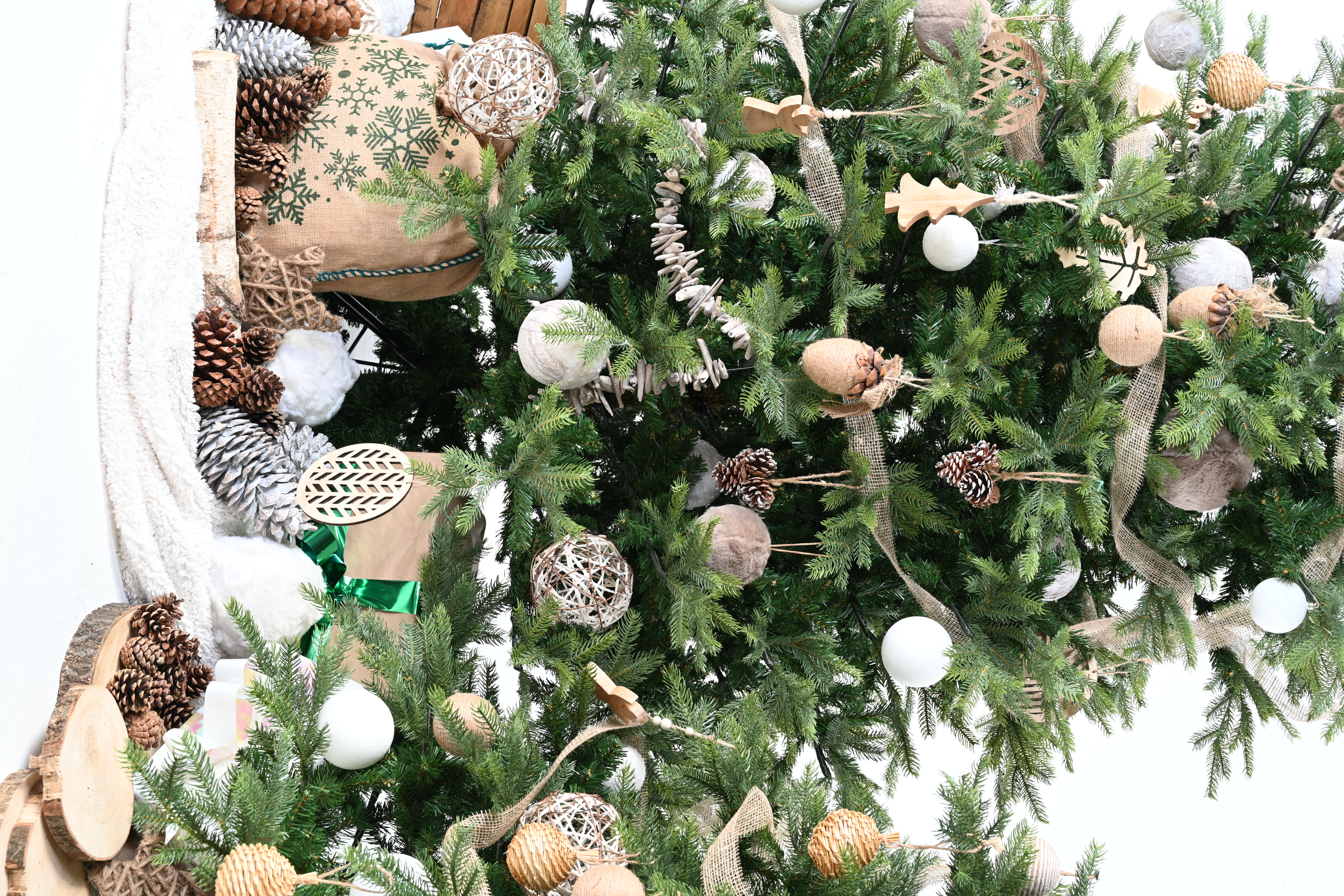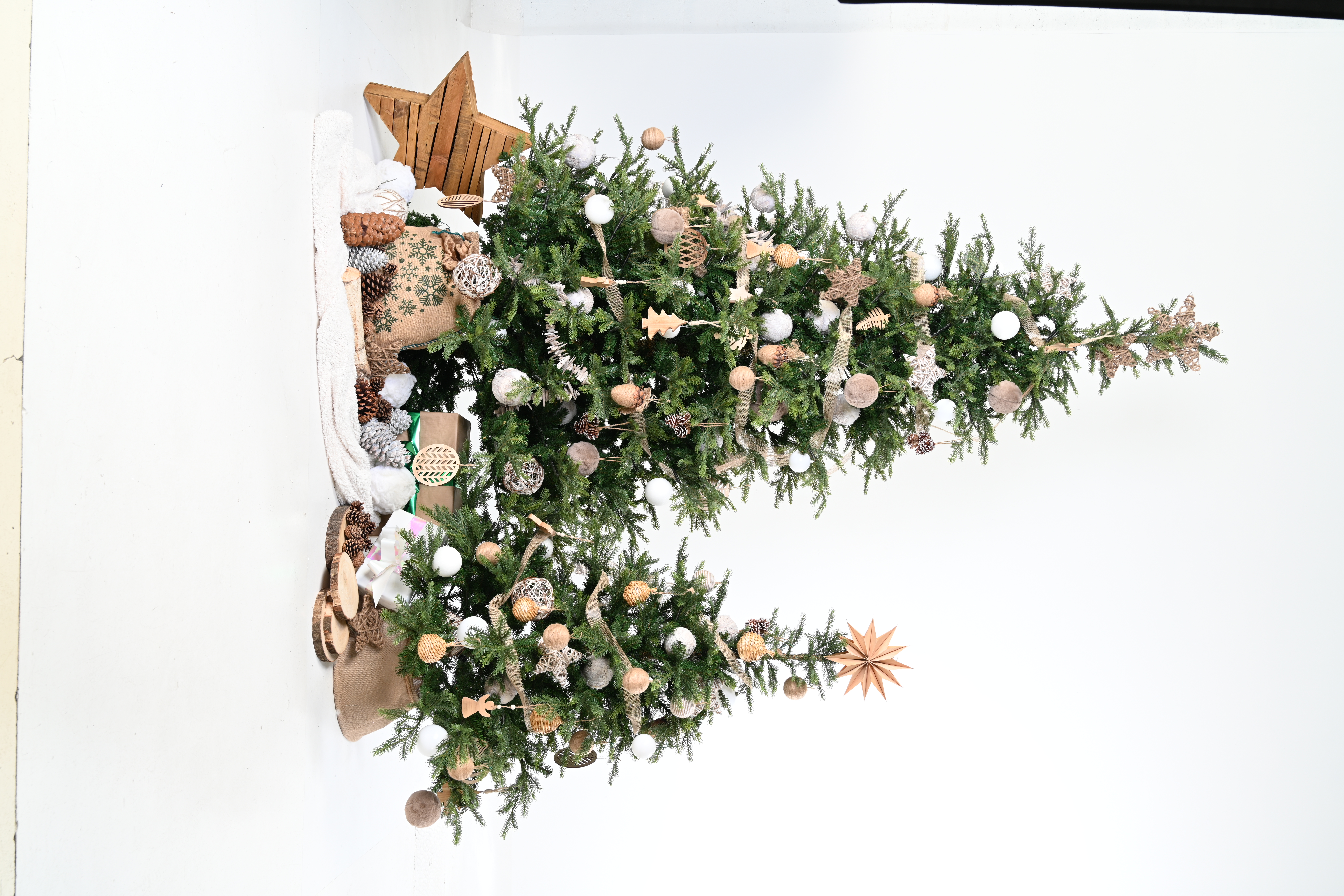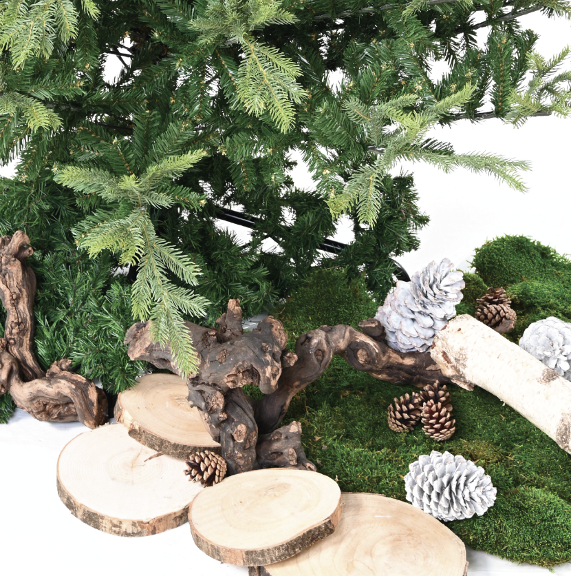 Sublimé par des éléments bruts à son pied (bois, pommes de pin, tons beiges et verts). Un retour à l’essentiel.