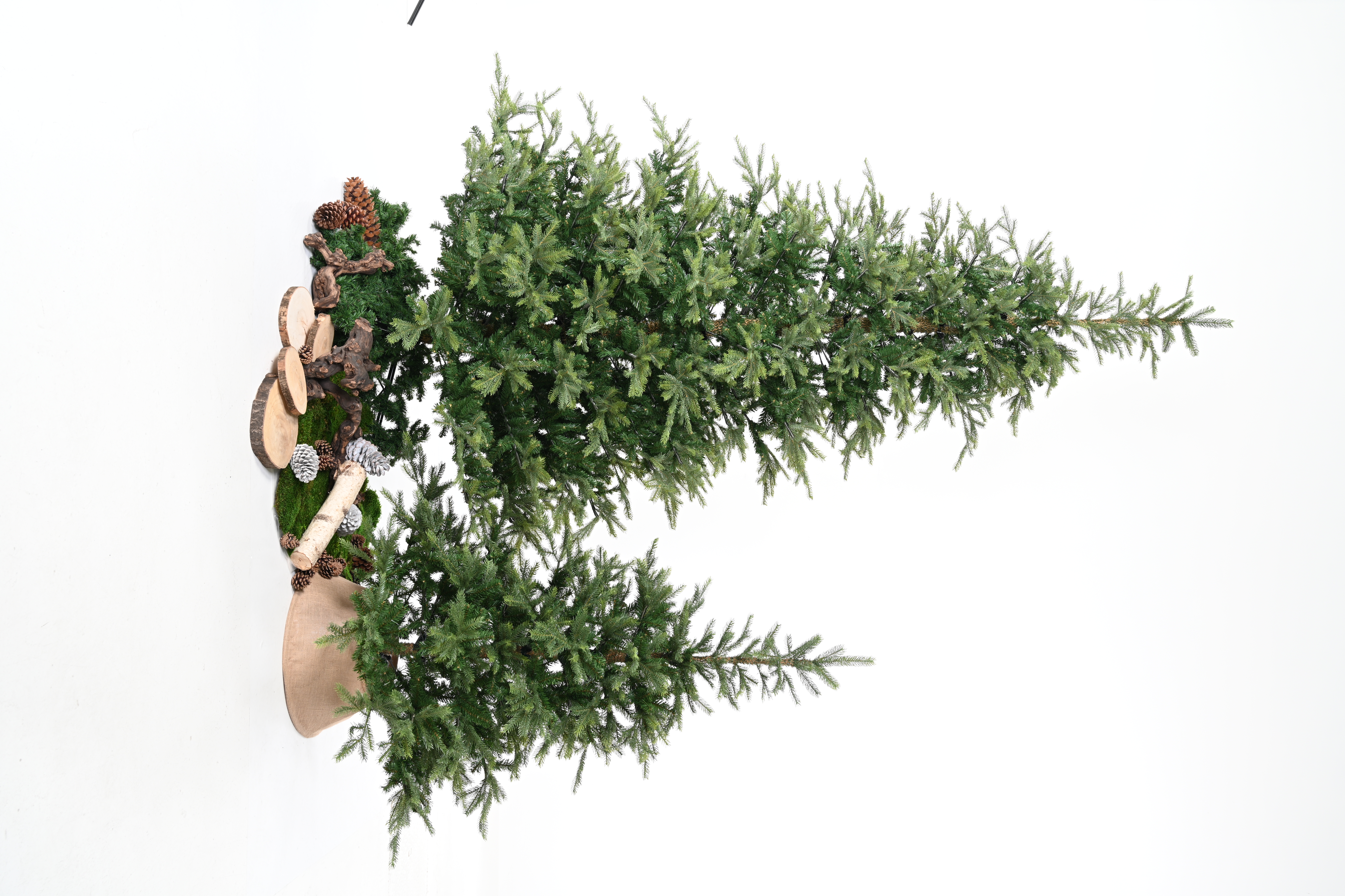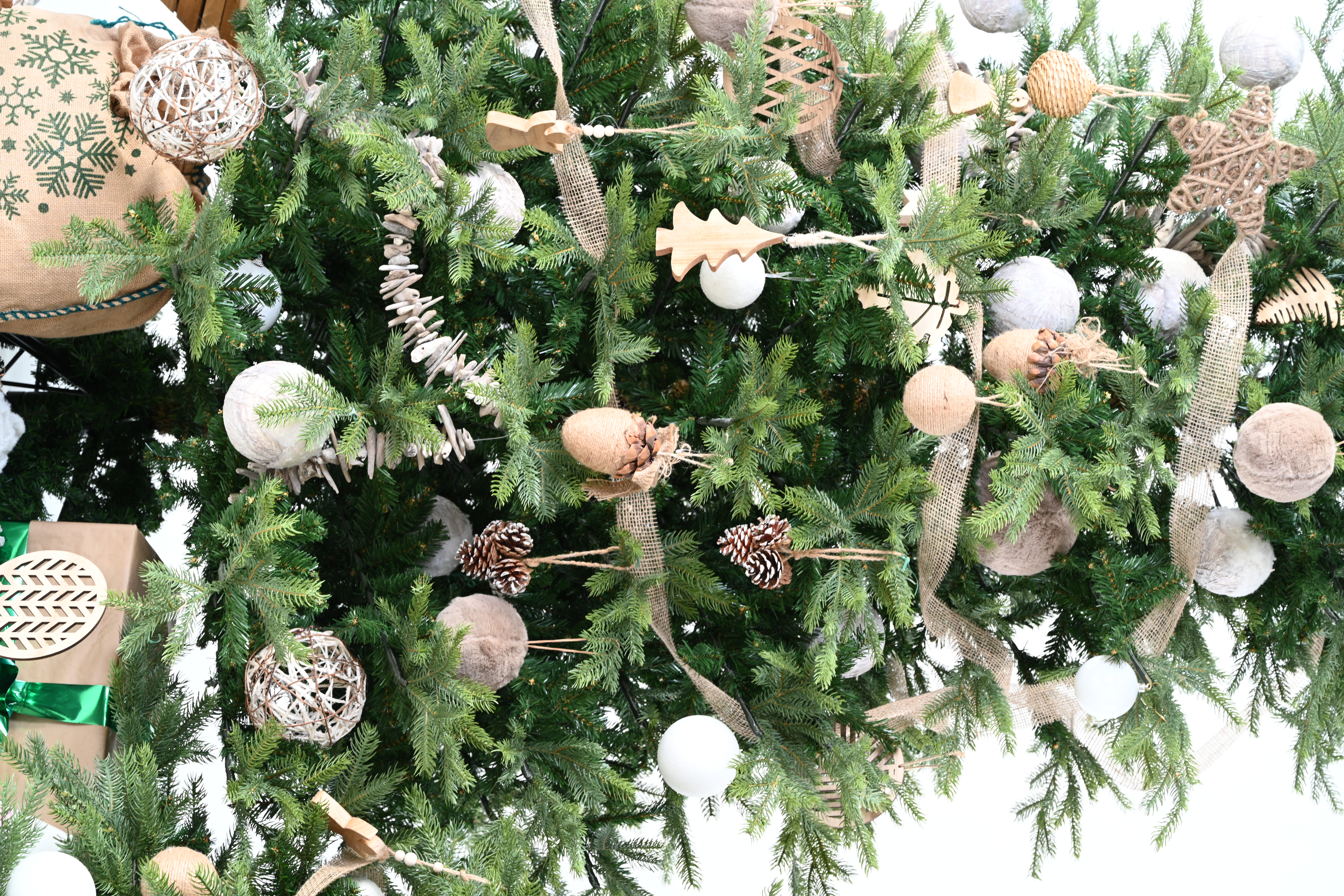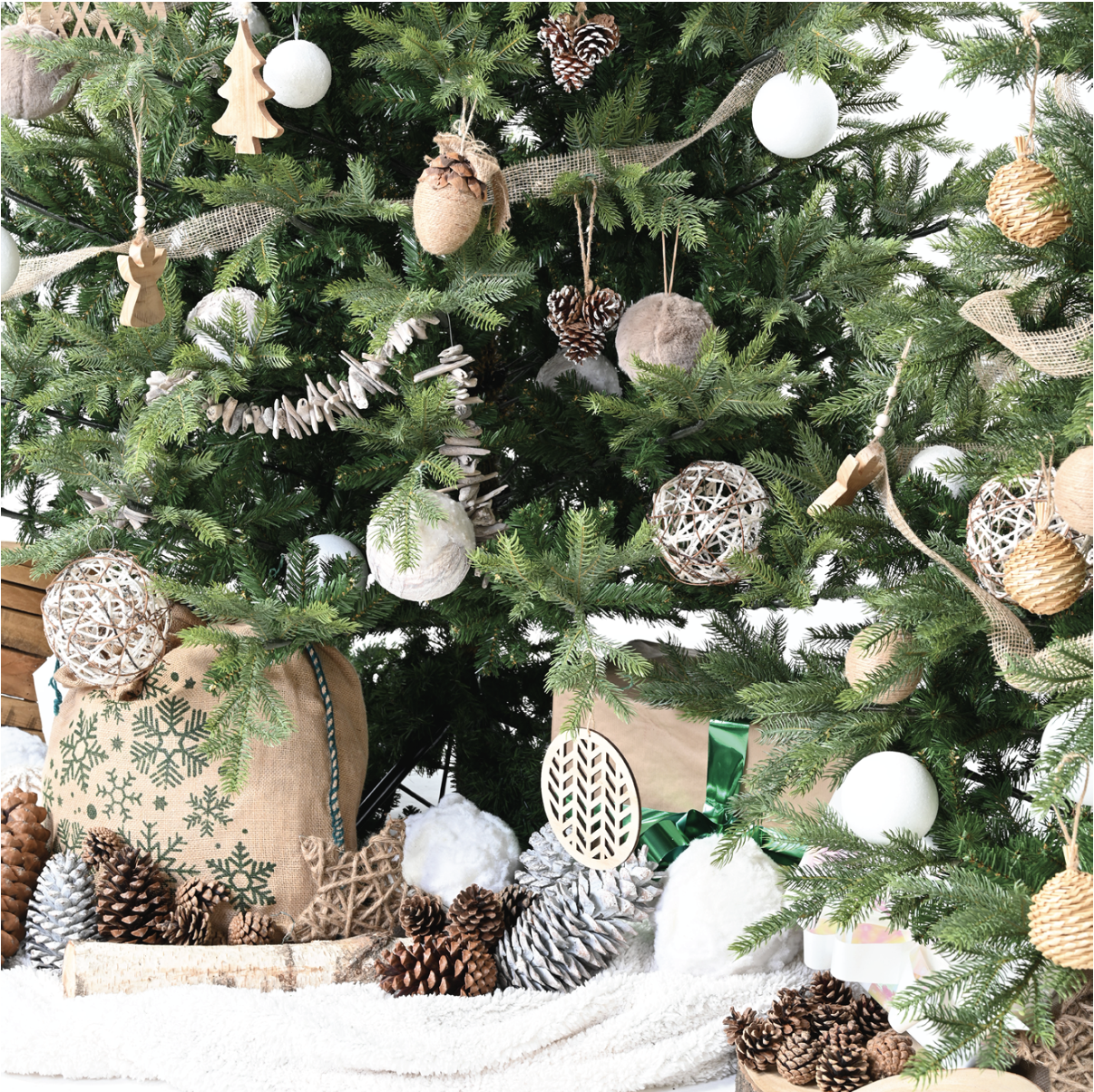 Sublimé par des éléments bruts à son pied (bois, pommes de pin, tons beiges et verts). Un retour à l’essentiel.
